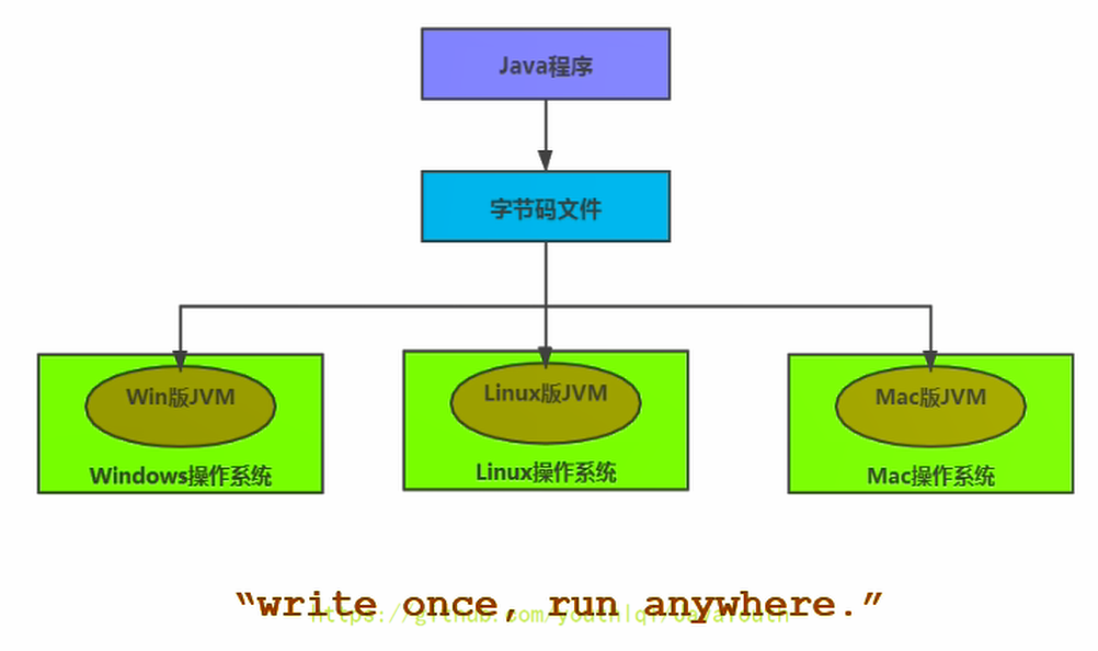 - 所有的虚拟机的原则:一次编译,到处运行。