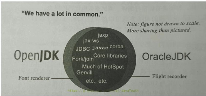 - 在JDK11之前,Oracle JDK中还会存在一些Open JDK中没有的,闭源的功能。但在JDK11中,我们可以认为Open JDK和Oracle JDK代码实质上已经达到完全一致的程度了。