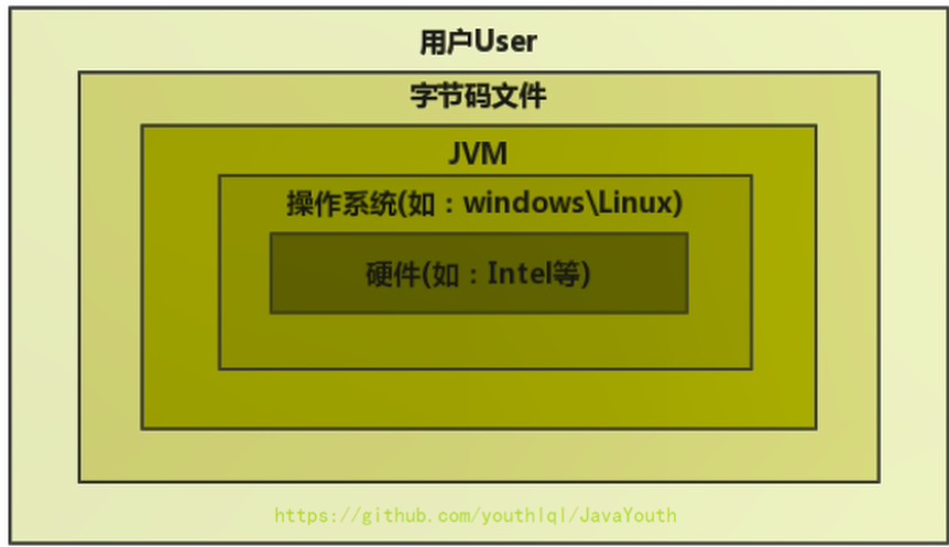 - 程序虚拟机的典型代表就是Java虚拟机,它专门为执行单个计算机程序而设计,在Java虚拟机中执行的指令我们称为Java字节码指令。